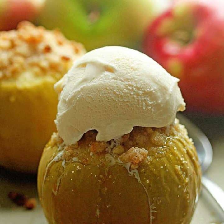 These Baked Crumble Apples are filled with plenty of fall flavors and topped with a delicious crumb topping!