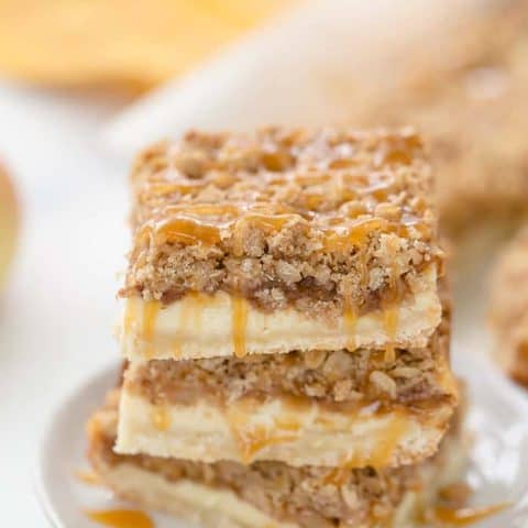 A triple layer of apples, cheesecake and crumb coat make these Apple Crumble Cheesecake Bars a different take on a classic fall dessert!